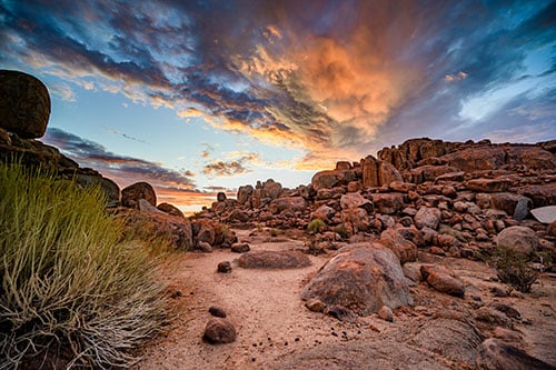Anticipation builds as you veer off C37, the main gravel road toward Canyon Lodge. The soft hues of apricot sand blending with the pale green of euphorbias provide a tranquil prelude to the beauty of the lodge's surroundings. As you round the final bend, the lodge emerges into view. Nestled among rounded granite boulders, Canyon Lodge's charming century-old farmhouse reception, lush garden, and serene pond beckon, extending a warm welcome into this enchanted enclave.