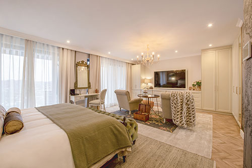 The luxuriously serene environment with a fully stocked kitchen and private bar as well as a comprehensive entertainment system and private plunge pool allows guests to unwind and recharge in complete privacy. Corporate travellers have a business suite at their disposal, equipped with a large screen, laptop connection and a printer.